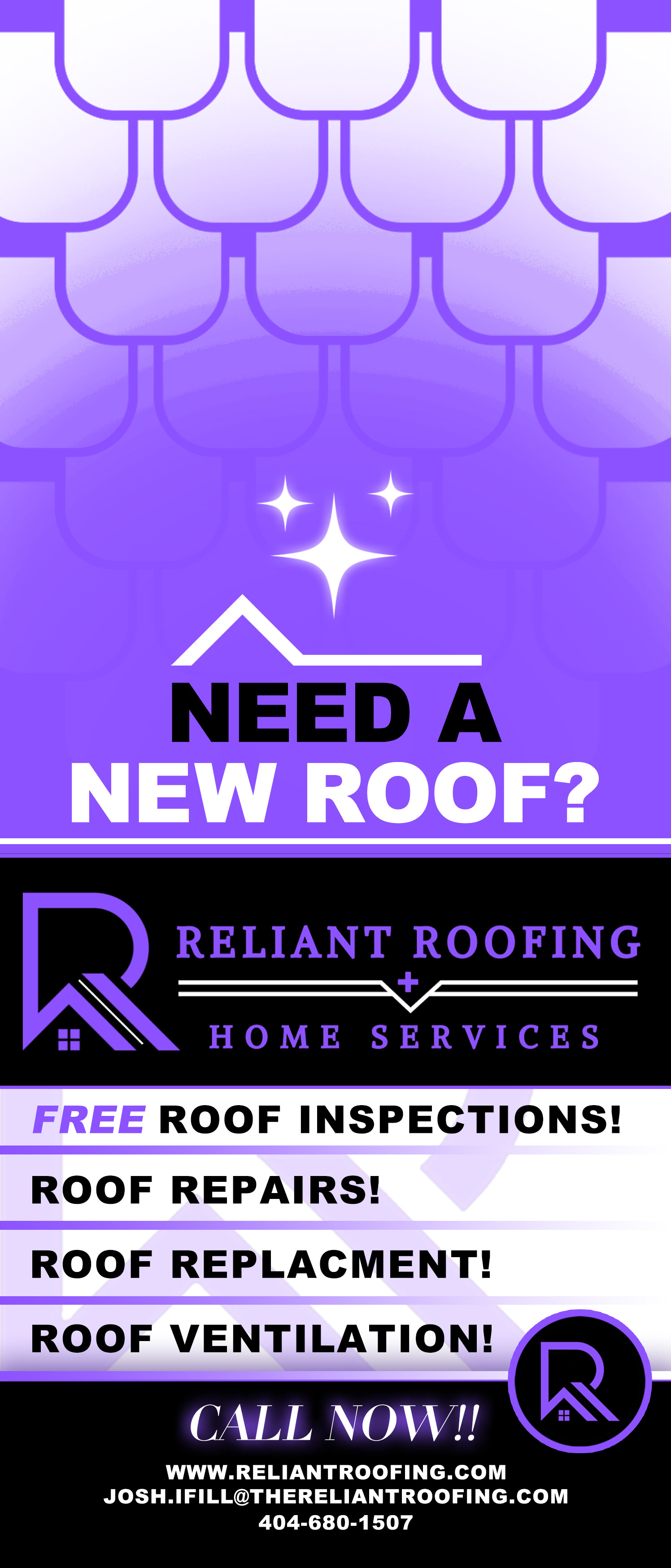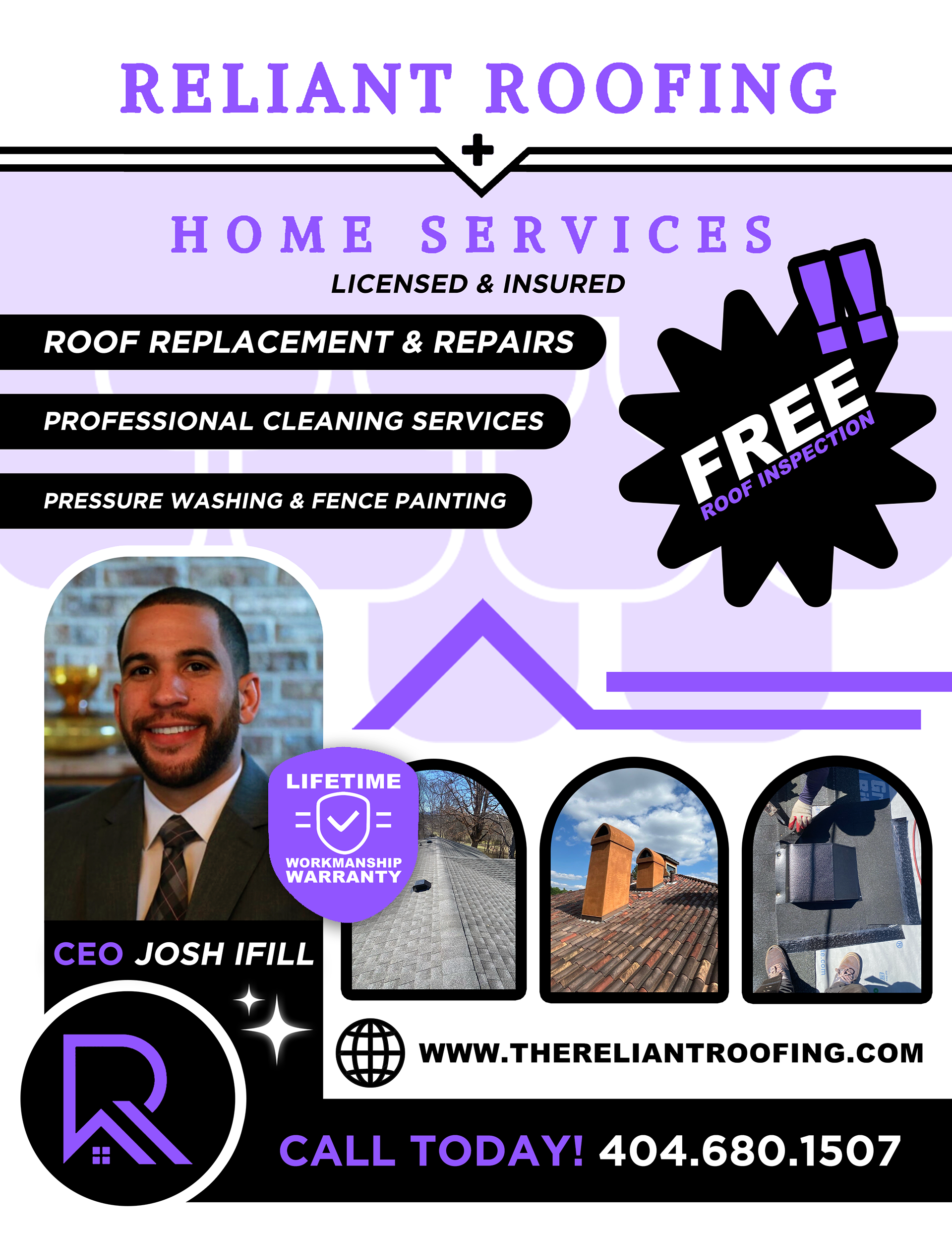 One door sign & digital flyer created for the advertising of Reliant Roofing Company, based in Atlanta. These assets were used both on social media and as printables for door-to-door sales.